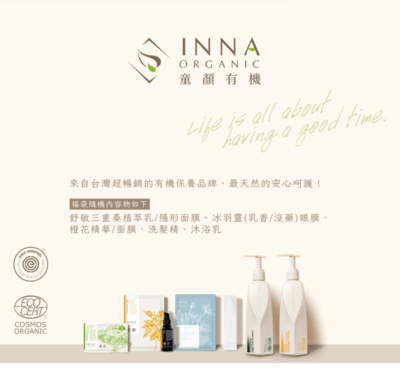 INNA ORGANIC 是目前亞洲唯一取得「國際有機認證 COSMOS 」以及「美國 EWG 環境友善安全認證」的有機精油保養品品牌。